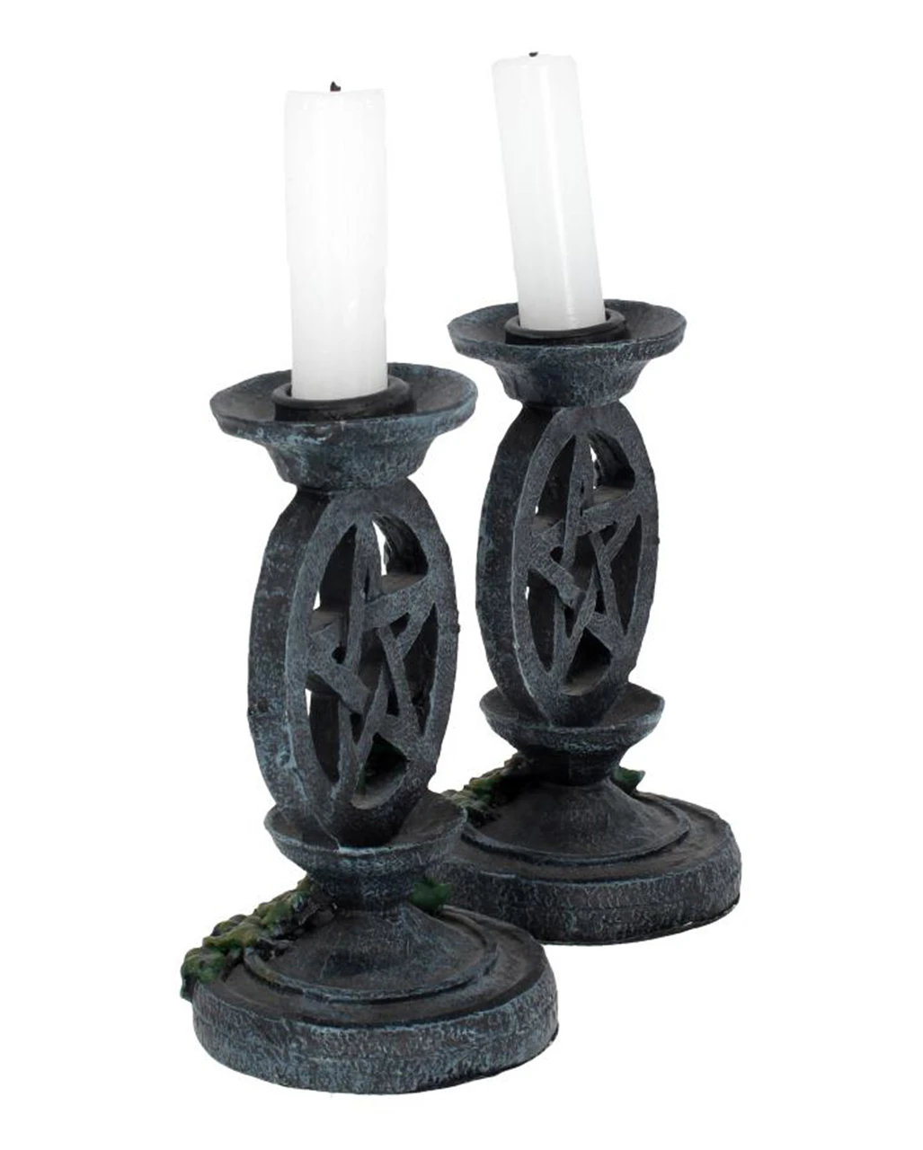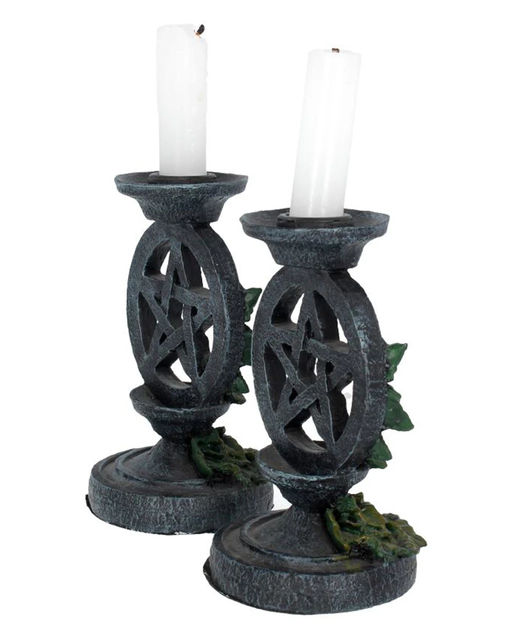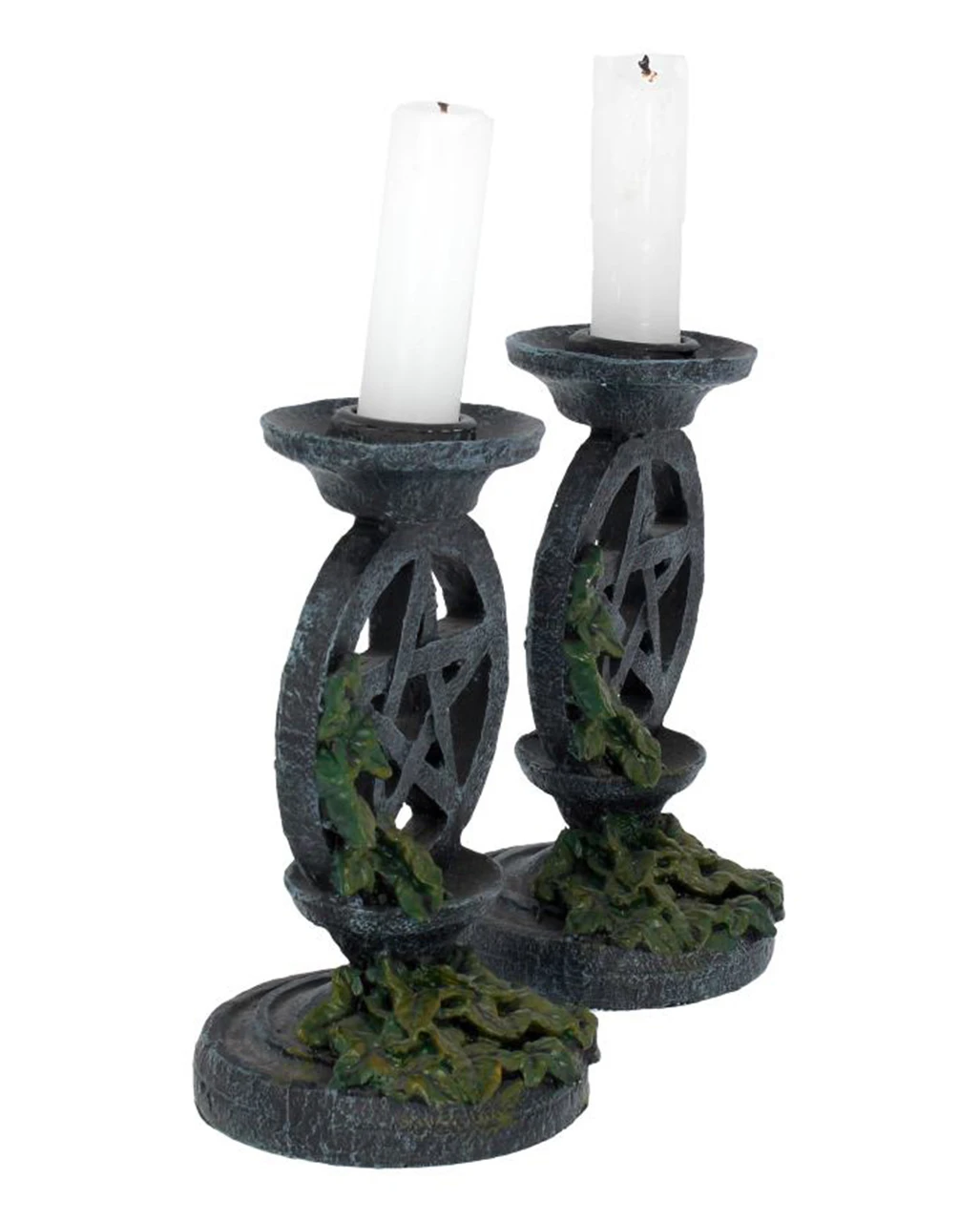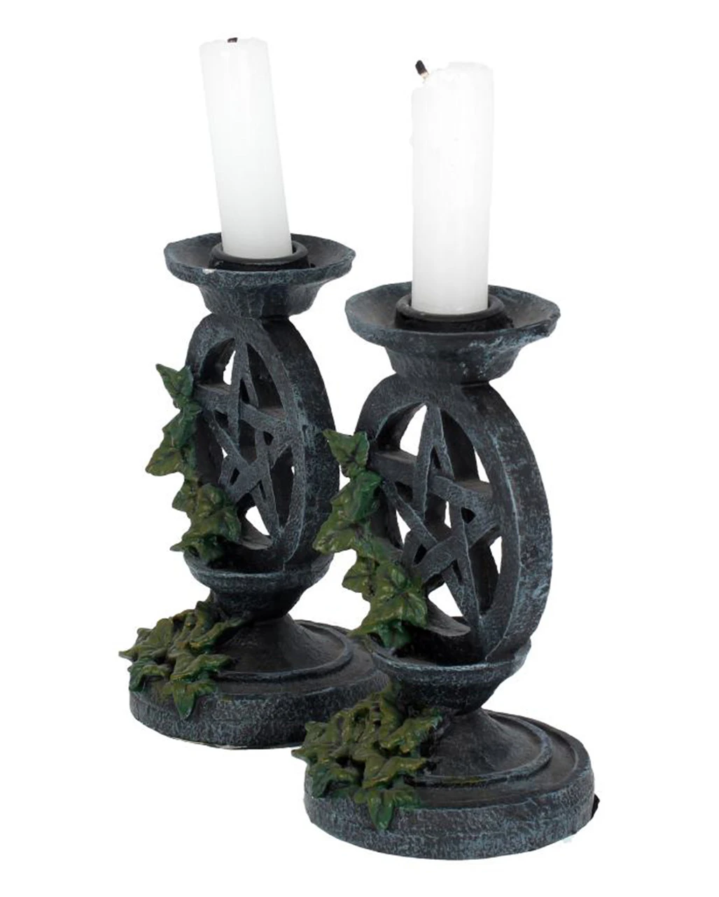 - Zwei Gothic Kerzenständer mit Pentagramm & Efeu als Motiv