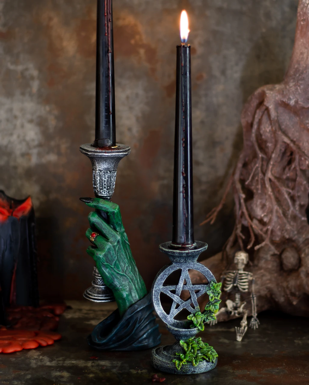 Antik aussehender Halloween Kerzenständer aus Kunststein