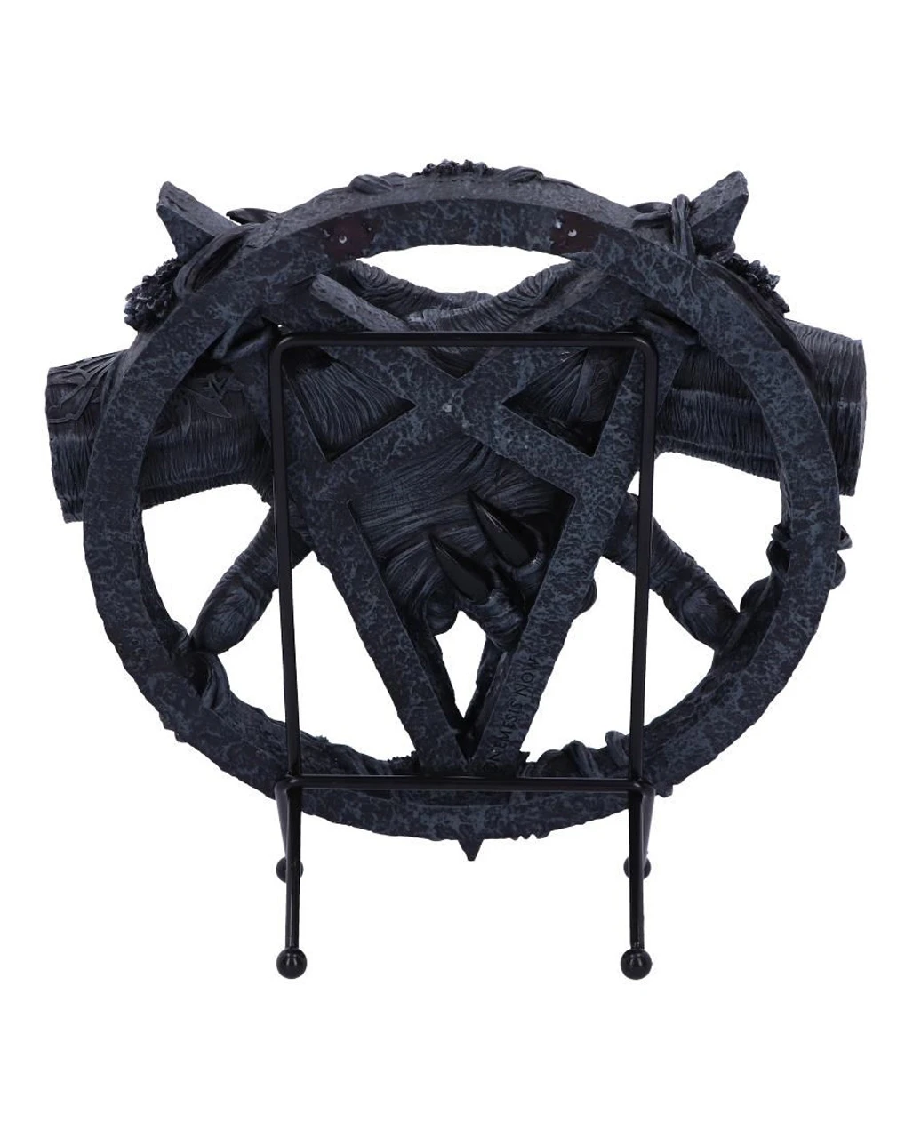 Der Baphomet Hände mit Pentagramm Aufsteller versprüht einen okkulten Charme, der Gothic und Metal Fans begeistern. Schwarze verdorbene Hände greifen recken sich dir entgegen. Zusammen den bekannten Hörnern des mystischen Baphomet Ziegenkopfs bilden sie den perfekten Pentagramm-Begleiter. Der Anblick dieses genialen Gothic Wohnaccessoire lässt sich schaudern und begeistert dich gleichermaßen. Damit hast du die perfekte Dekoration für deine Gruft.