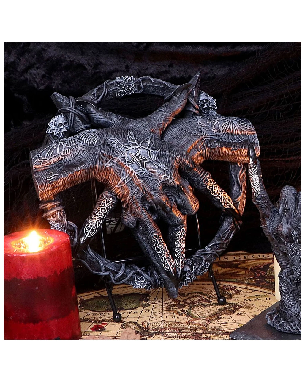 Lieferumfang: 1 x Baphomet Hände mit Pentagramm Aufsteller