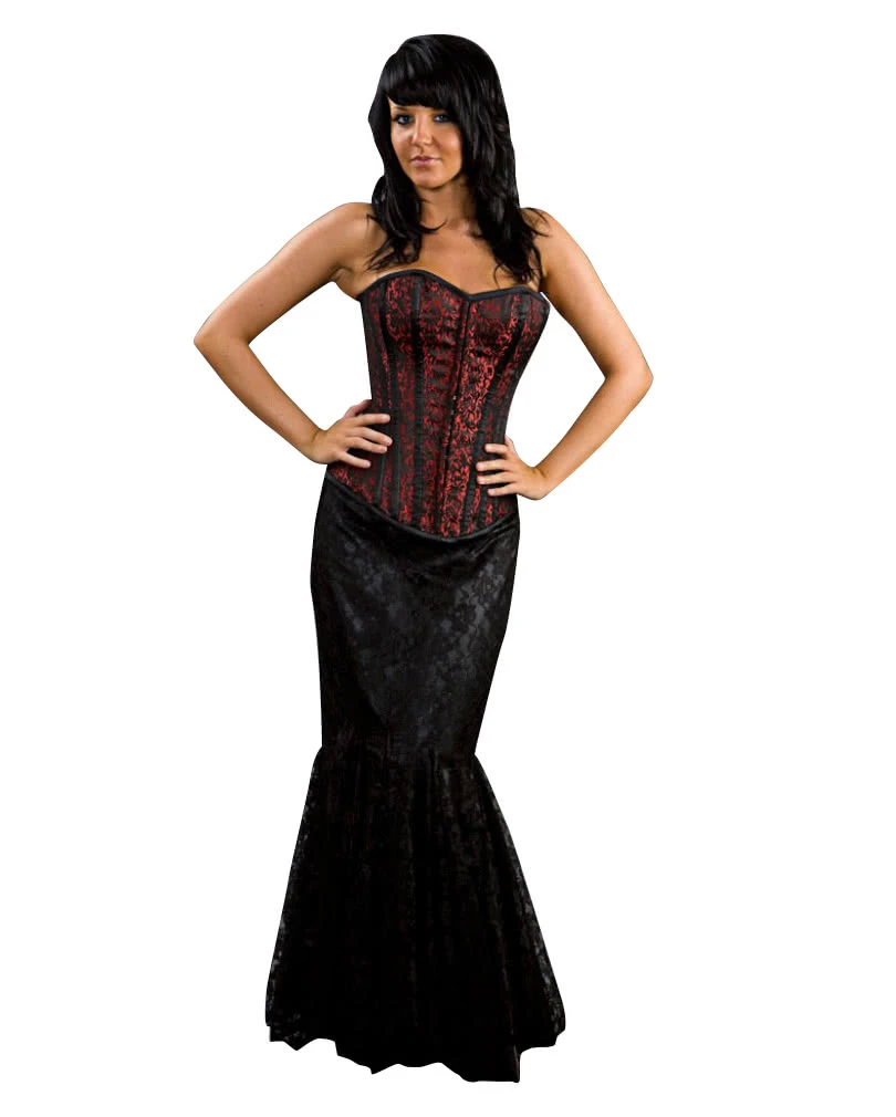 Edle Gothic Bekleidung, wie der bodenlange Bahnenrock schwarz sind eine fantastische Möglichkeit deinem persönlichen Style Ausdruck zu verleihen und dich damit von der alltäglichen langweiligen Mode abzuheben. Zu dem interessanten Spitzenrock lassen sich chice Oberteile oder Korsetts kombinieren.