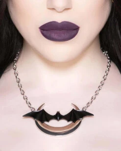 - Modische Gothic Halskette mit Fledermaus & Halbmond Motiv