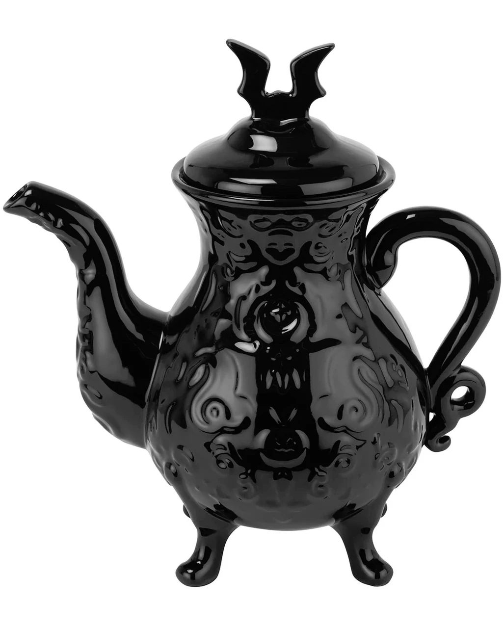 Schwarze Gothic Kanne mit Deckel und Fledermaus Detail