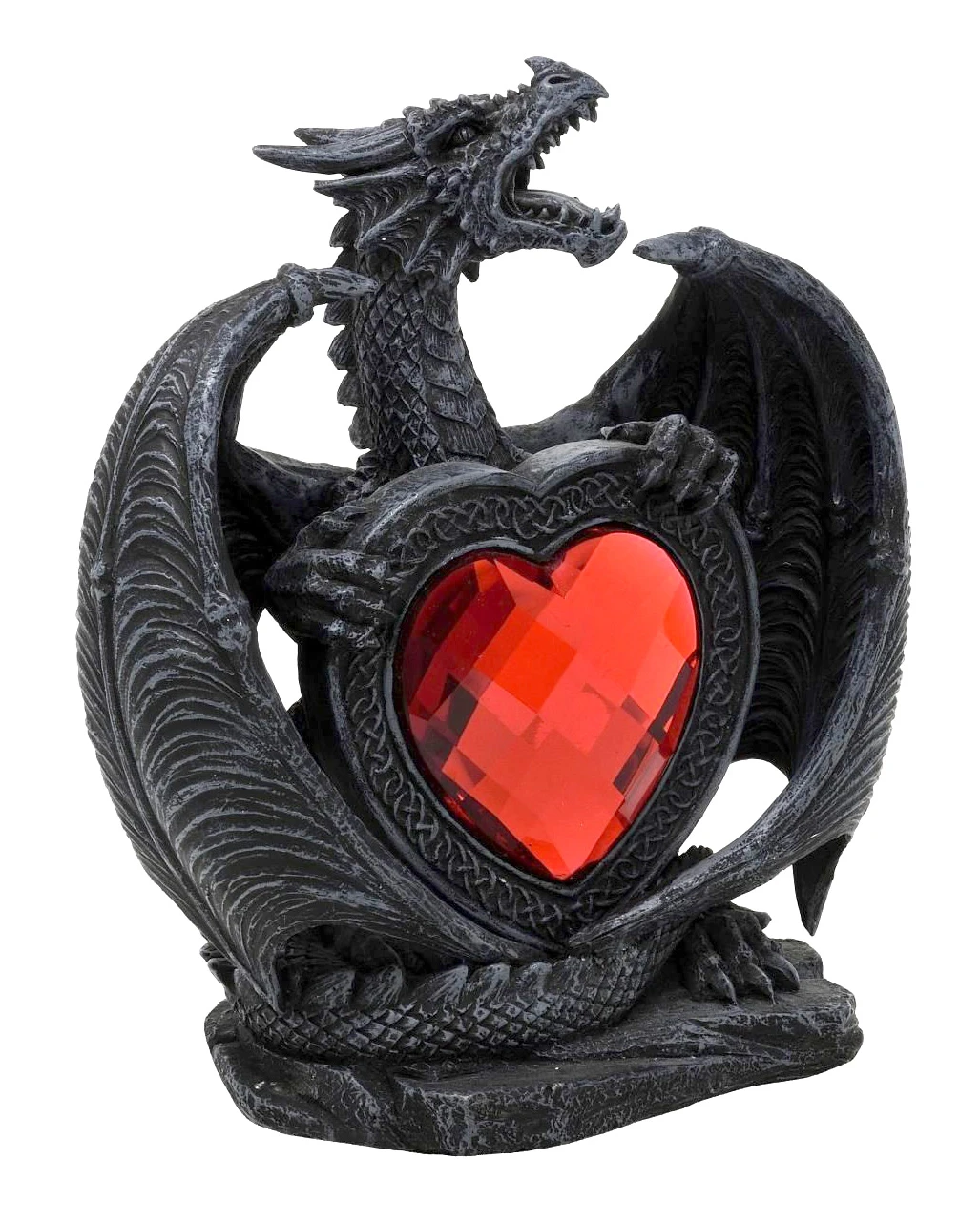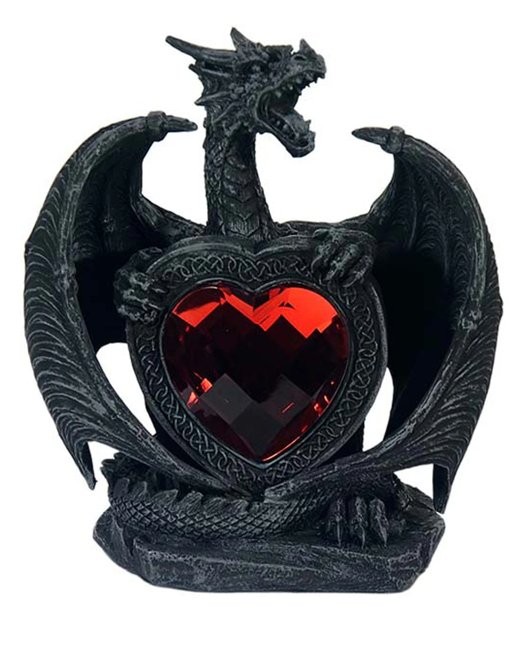 Schwarzer Kunststein Drache mit rotem Herz aus Acryl