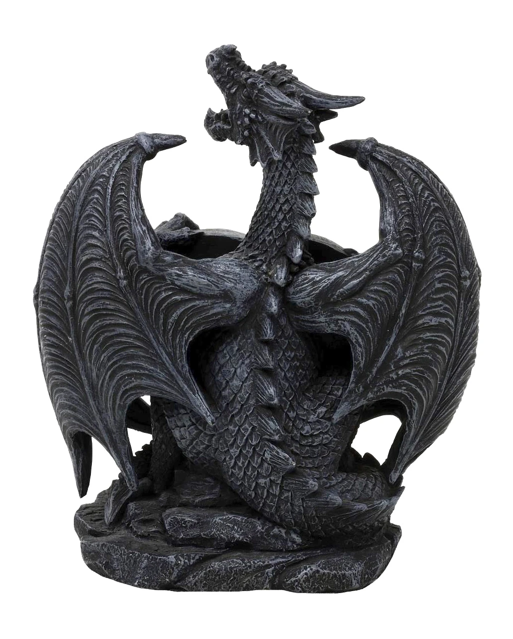 Auch als heiliges Symbol für den Fantasy Rollenspiel Abend wird die Drachenfigur mit rotem Herz zum anbetungswürdigen Element. Die Drachenfigur ist aus hochwertigem Polyresin (Kunststein) hergestellt. Sie zeigt einen Drachen mit beeindruckend großen Flügeln und einem vorlaut geöffneten Maul. Die feinen Schuppen, das Drachengesicht und andere kleine Details wurden sehr schön herausgearbeitet, so dass der Drache zum Betrachten und Bewundern einlädt. Auffällig ist natürlich auch das blutrote Acrylherz des Gothic Drachen. Weitere Gothic Deko wie die Totenkopf Kerze findest du in Hülle und Fülle bei uns im Shop.