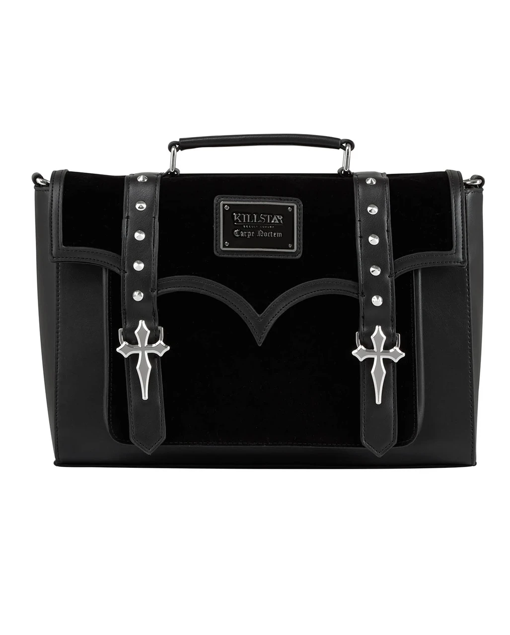 Schwarze Tasche mit Schulterriemen als Accessoire für Gothics