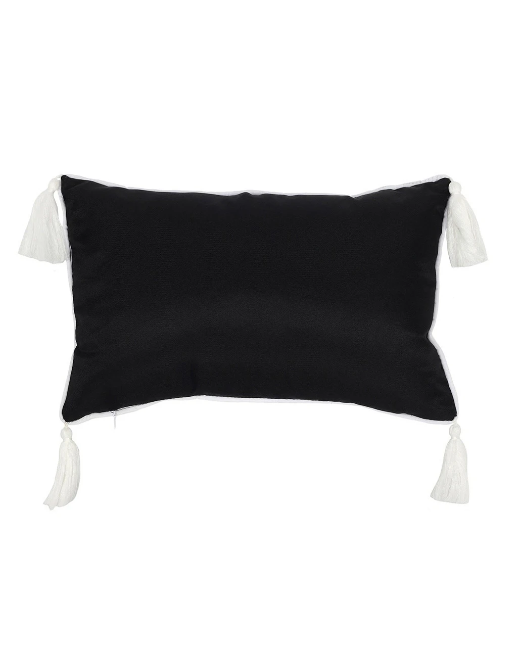 - Rechteckiges, schwarzes Kissen mit Dreifach Mond Motiv