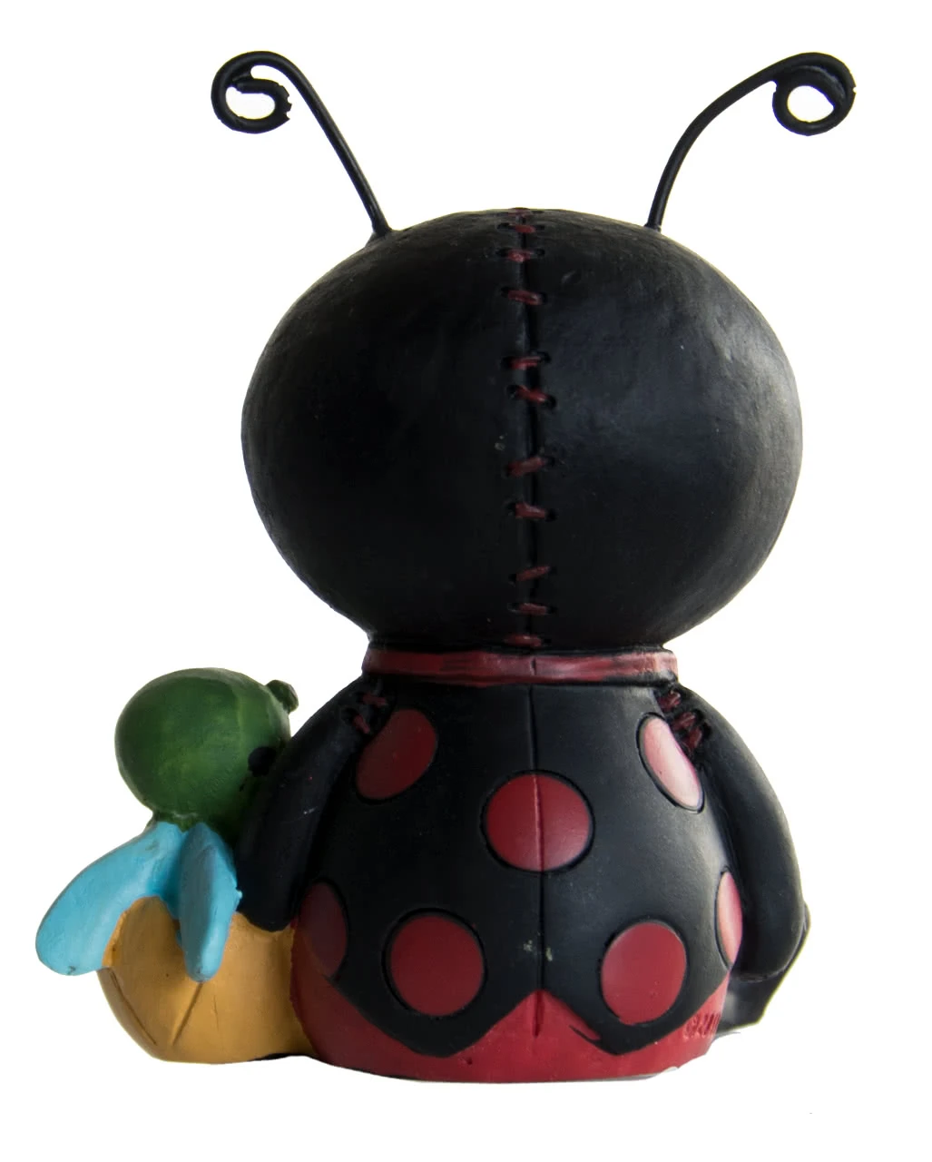 Die kleine Dots – Furrybones Figur ist ca. 7,5 cm hoch, 5,5 cm breit & 4 cm tief & besteht aus Polyresin, einem stabilen Kunststein. Die Gothic-Marienkäfer-Figur ist von Hand bemalt & mit viel Liebe zum Detail verarbeitet. Es sieht aus, als sei eine Skelett ähnliche Figur in das innere des schwarz-roten Käfers im Smoking geschlüpft, grinst frech heraus & hat ein grünes Baby in gelber Blüte im Arm. Die Furrybones Figuren sind ein genialer Geschenkartikel für Gothic & Marienkäfer Fans.