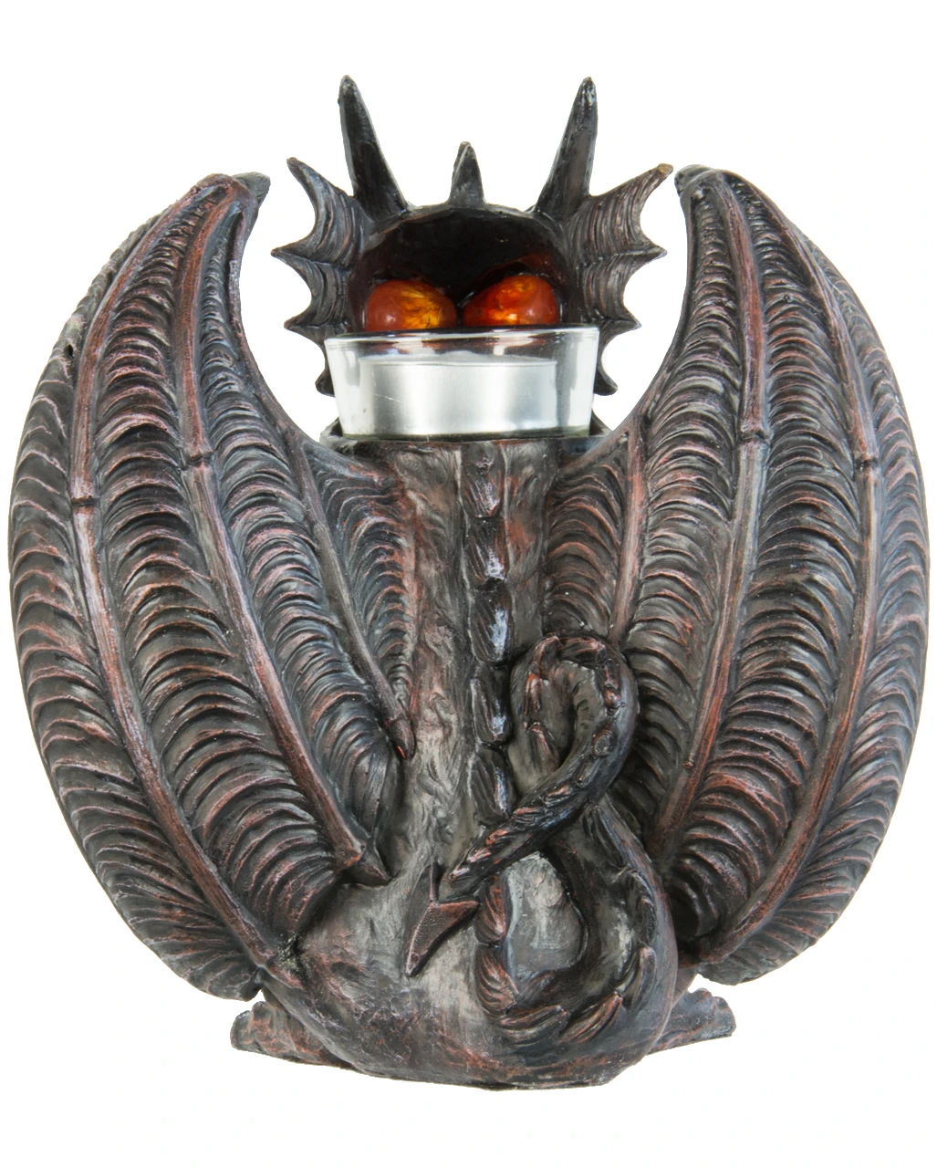 Eindrucksvoller Drachen Teelichthalter im Gothic-Look