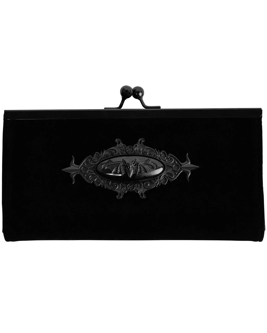Großes schwarzes Portemonnaie mit Fledermaus aus weichem Samt