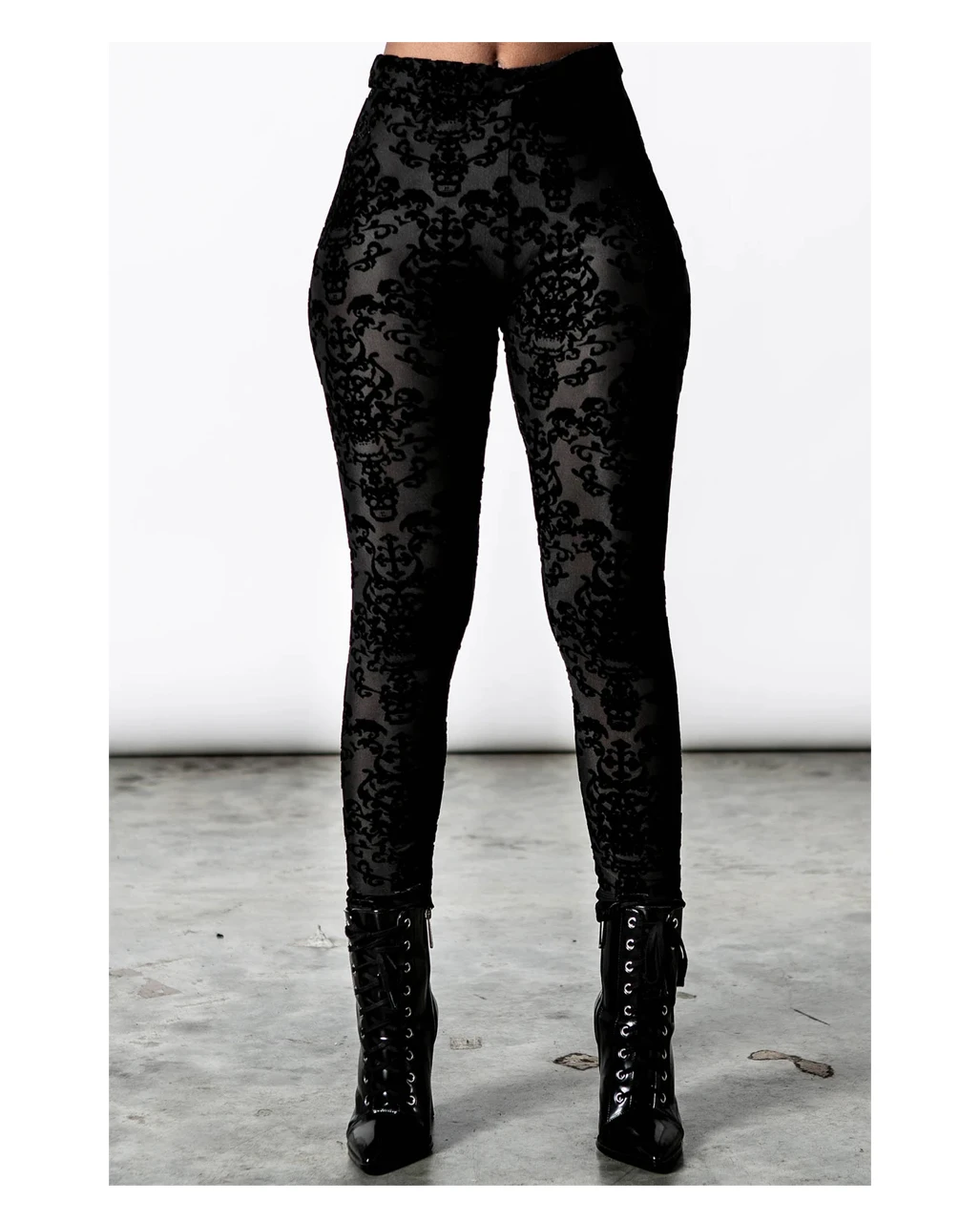 Schwarze Samt Gothic Leggings mit floralem Muster