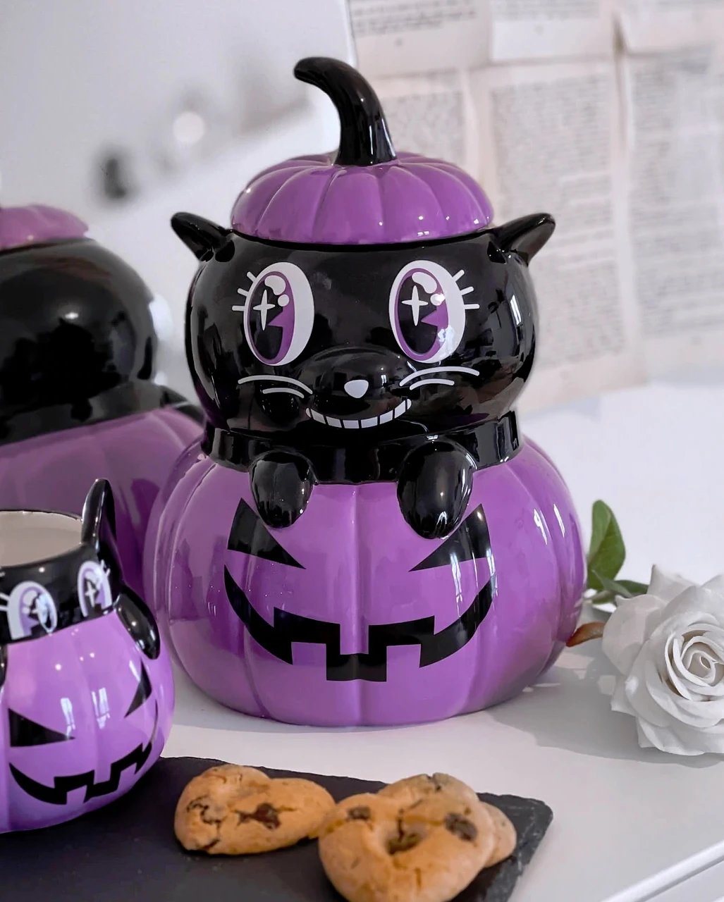 Unser Meowloween Keramik Behälter von KILLSTAR kommt mit einem abnehmbaren Deckel, um deine Kekse länger frisch zu halten. Befülle die KILLSTAR Keramik Dose mit Leckereien und platziere sie dekorativ auf dem Tisch oder im Regal. Auch als Geschenkidee für Halloween Fans macht sich unsere KILLSTAR Keksdose perfekt! Entdecke passend dazu die Meowloween Teekanne KILLSTAR