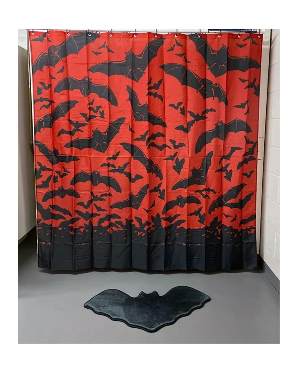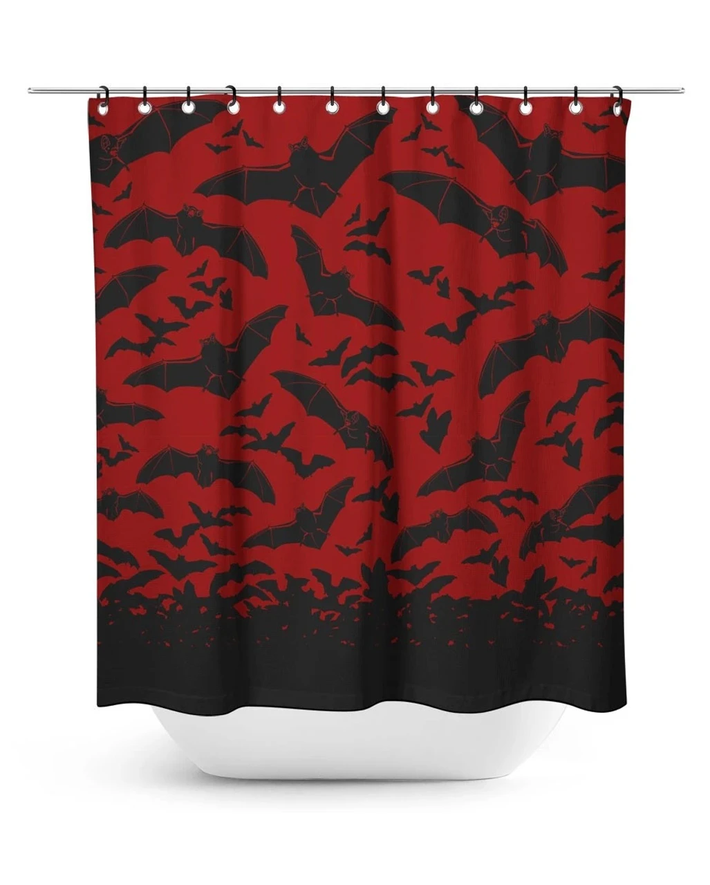 Blutroter Duschvorhang mit Fledermäusen als Gothic-Wohn Accessoire