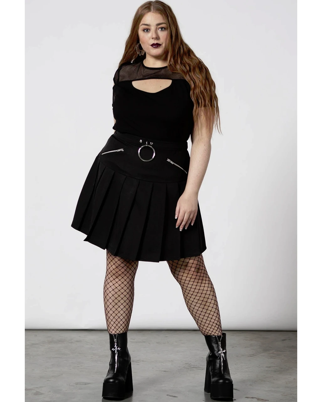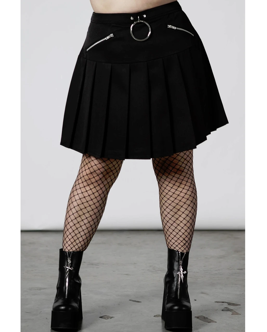 Lass deinen Kleidungsstil für sich sprechen in unserem No Lip Falten Rock KILLSTAR. Er ist aus weichem, dehnbarem Stoff gefertigt und mit einem Metall Ring, einem Reißverschluss und Falten versehen, die ihm eine besondere Note verleihen. Kombiniere ihn mit Gothic Plateaustiefeln, einer süßen Hose und einer tollen Gotik Tasche für einen außergewöhnlichen Look. Wie wäre es zum Beispiel mit den Crusher Totenschädel Overknee Strümpfe KILLSTAR und der Vampir’s Kiss Sarg Handtasche KILLSTAR dazu?