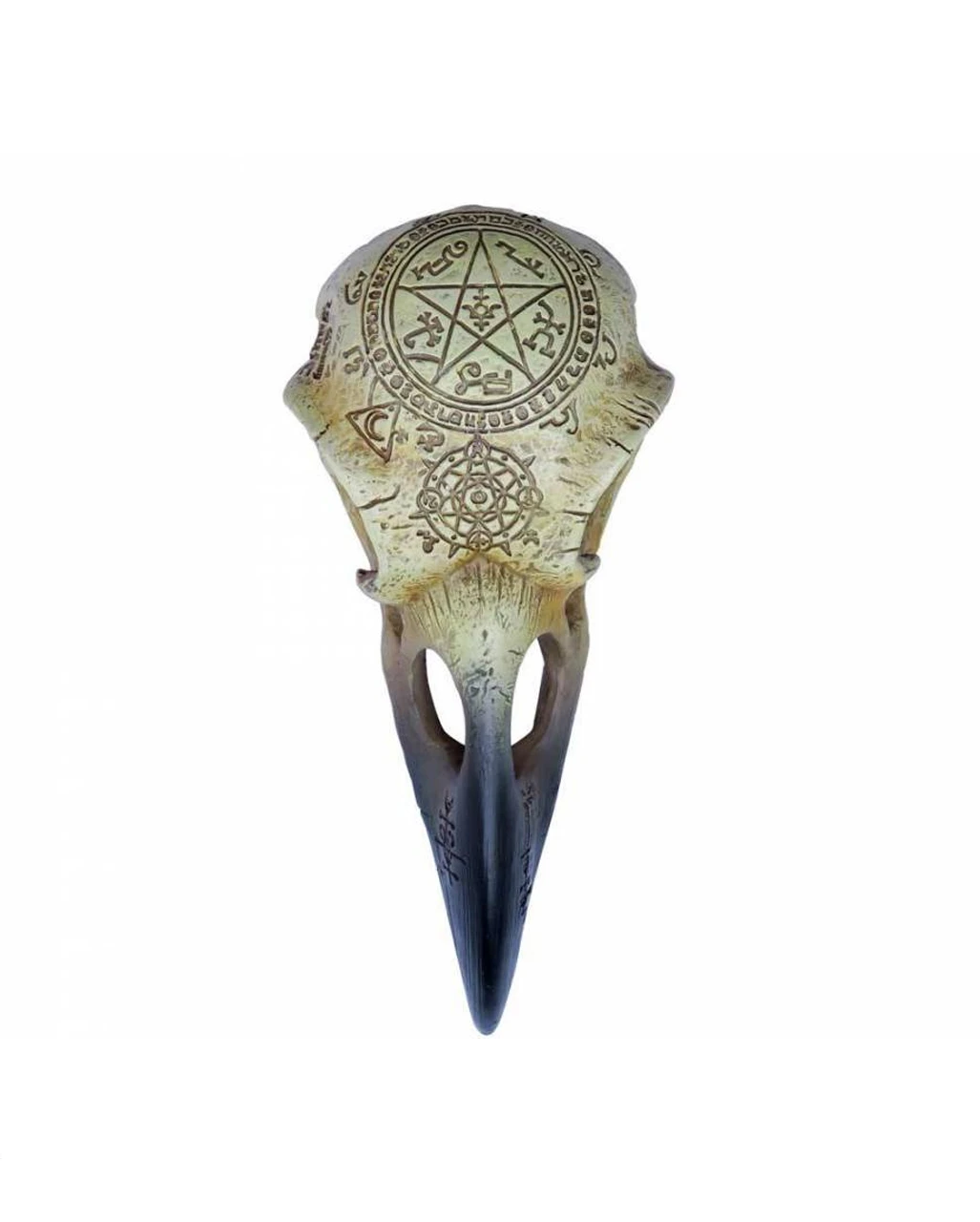 Kanalisiere die Energien Huginns und Muninns – den beiden Krähen des nordischen Kriegsgottes Odin. Mit unserem Omega Raben Totenschädel lassen sich okkulte Séancen abhalten oder Voodoo-Praktiken betreiben. Die magischen Sprüche sind bereits kunstvoll auf dem Deko Rabenschädel aufgedruckt. Platziere den Voodoo-Tierschädel als Deko- Element in deinem Regal oder in einem Arrangement aus Knochen, und spüre die mystische Energie, die deinen Körper durchfährt. Ob als Halloween Deko oder Mythologie Ausstellungsstück – ein Hingucker ist der Rabenschädel allemal.