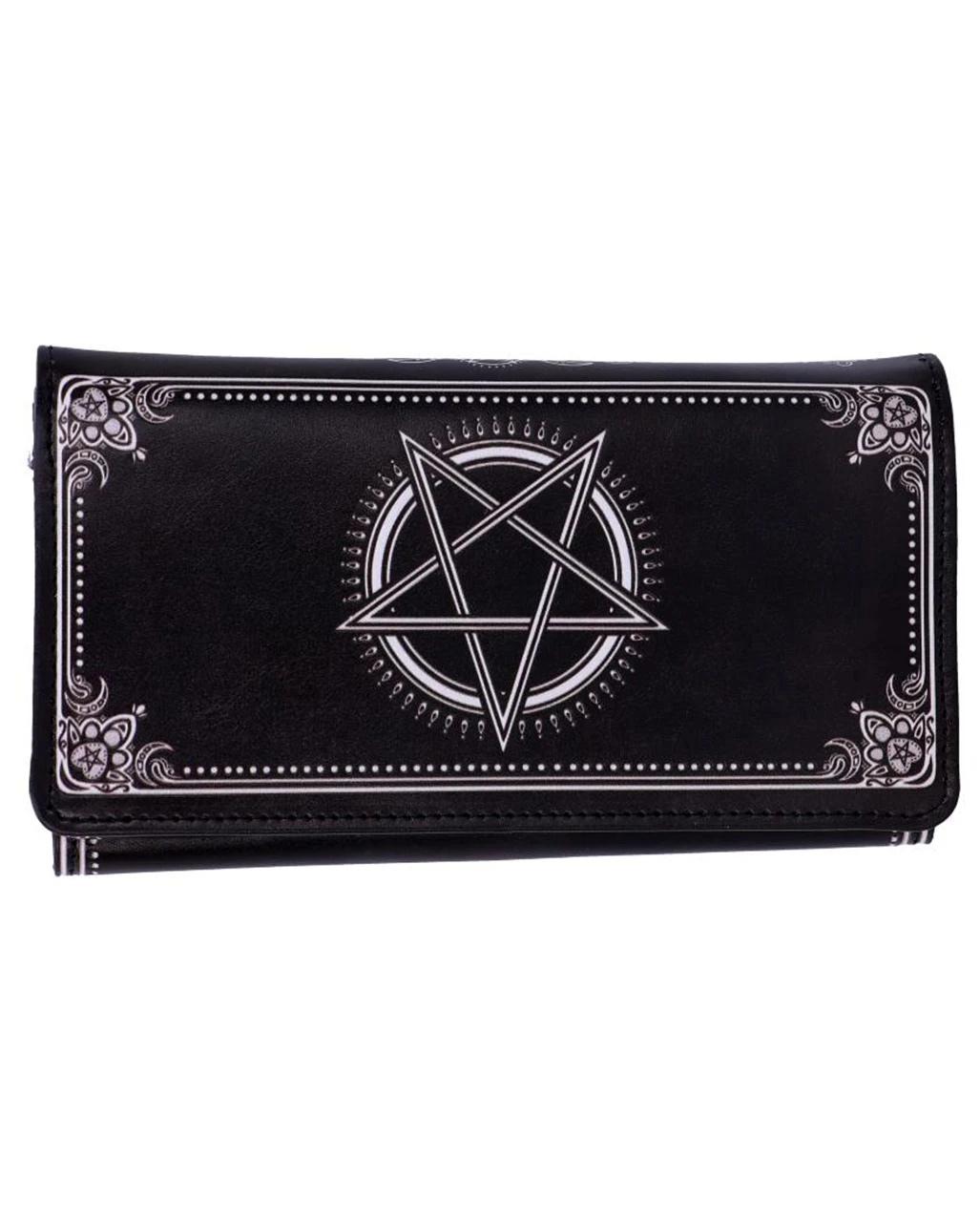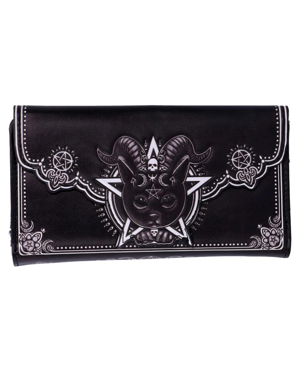 Unser geprägter Malpus Kult Cutie Geldbeutel ist ideal für Wicca und Pagan Fans. Okkult lebend verlässt du deine Gruft am liebsten mit den passenden Accessoires. Der Pentagramm Aufdruck und die niedliche Katze mit den Ziegenhörnern akzentuieren deine Liebe zu allen Wesen der Nacht auf modische Weise. Genau diese düsteren Feinheiten machen das extravagante Portemonnaie zum neuen Lieblingsteil aller Gothic Queens. Die Katze wiederum, die auf zauberhafte Weise für die Vereinigung von Gut und Böse steht, ist natürlich auch das perfekte Geschenk für Katzenfans.