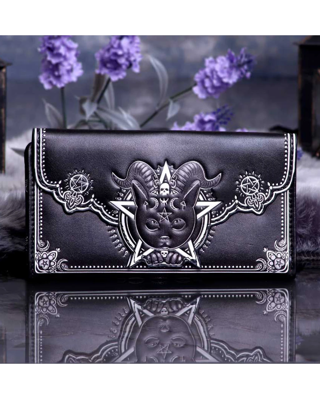 Gothic Geldbeutel mit okkulter Baphomet Katze als Fokus