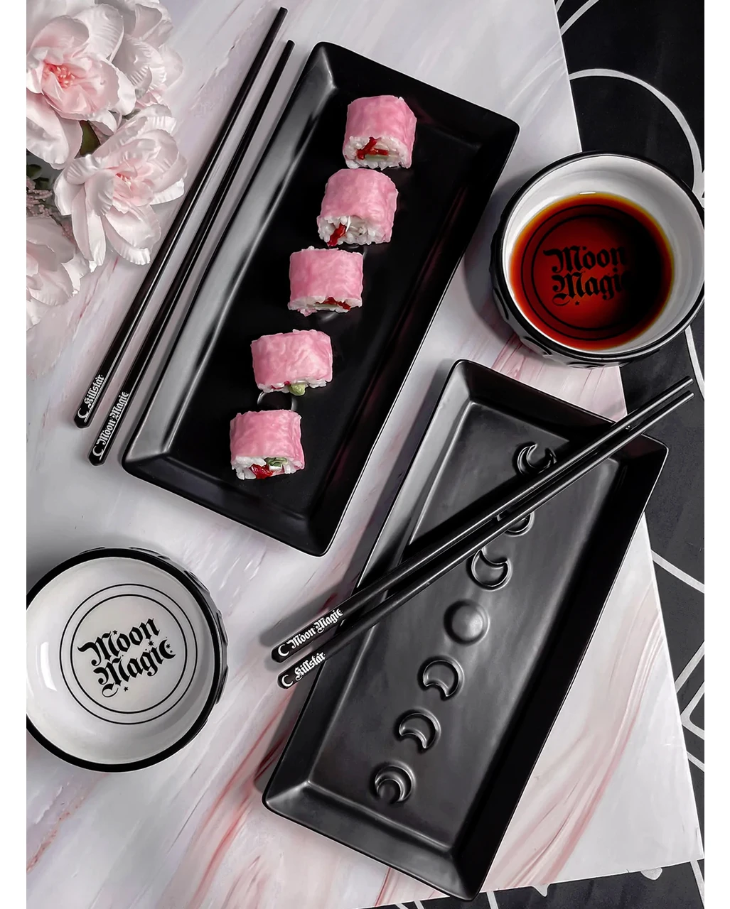 - Schwarz-weißes Gothic Sushi Set in matter Optik