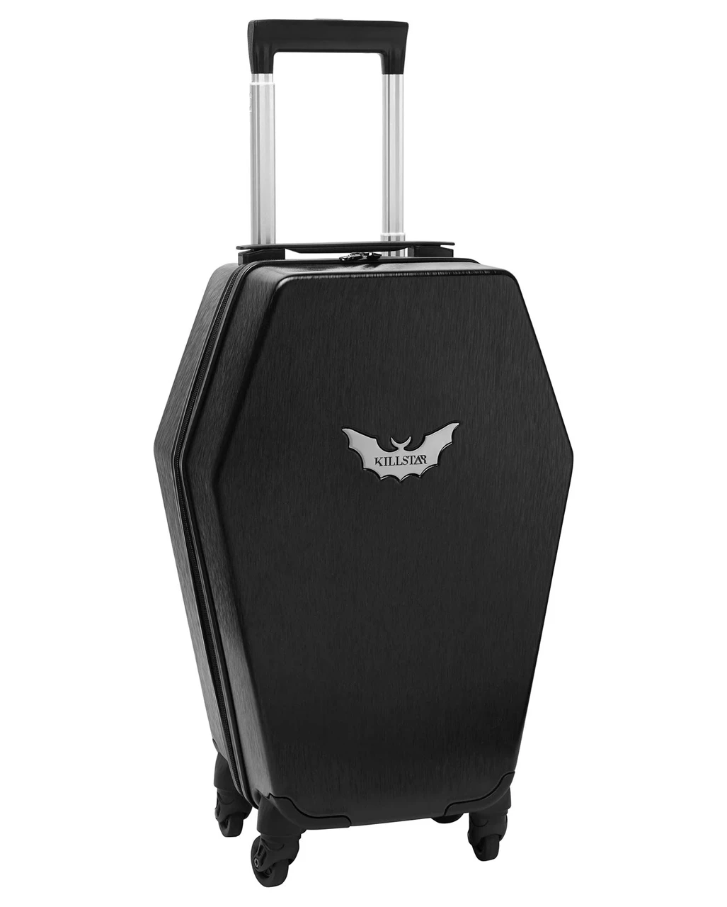Wenn Vampire auf Reisen gehen, dann wollen sie ihre Lieblingsfledermaus und ihre Blutreserven stilecht transportieren. Und wenn Gothic Fans verreisen, lieben sie es, ihre Habseligkeiten in einem besonderen Koffer mitzunehmen. Der Sarg Reisekoffer KILLSTAR ist für beide Gruppen natürlich ideal. Als Hartschalen Koffer im Sarg Design ist er unverzichtbar, wenn du zum nächsten Gothic Konzert reist. Der außergewöhnlicher Eyecatcher bietet genug Platz für all dein Zeug. Die robuste Schale sorgt für die nötige Sicherheit.