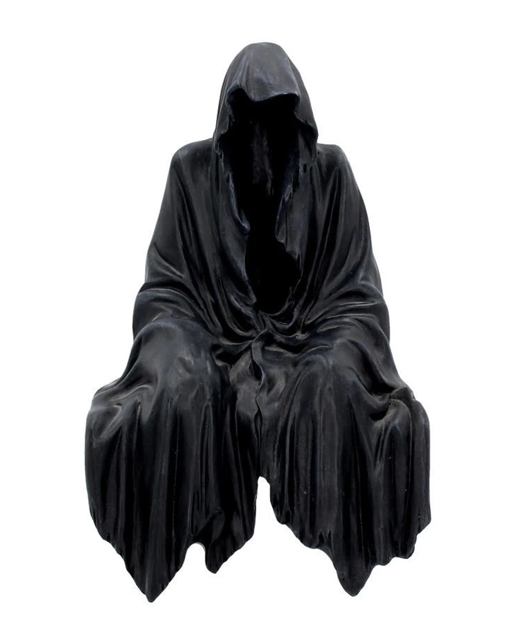 …wenn er da so dekorativ in dem Regal hockt. Hoffentlich gruselt sich die Verwandtschaft nicht zu sehr vor diesem unheimlichen Reaper, der trotz seiner Leblosigkeit schon ein bisschen unheimlich wirkt. Damit gibt er eine prima Halloween Deko ab. Oder aber Du erfreust das Herz eines Gothic Fans mit dieser beeindruckenden Fantasy Wohndekoration. Hoffen wir nur, dass der Sensenmann Kantensitzer auch so still und friedlich da sitzen bleibt. Es wäre sonst ein Jammer um den armen Tropf, den Du damit beglücken wolltest.