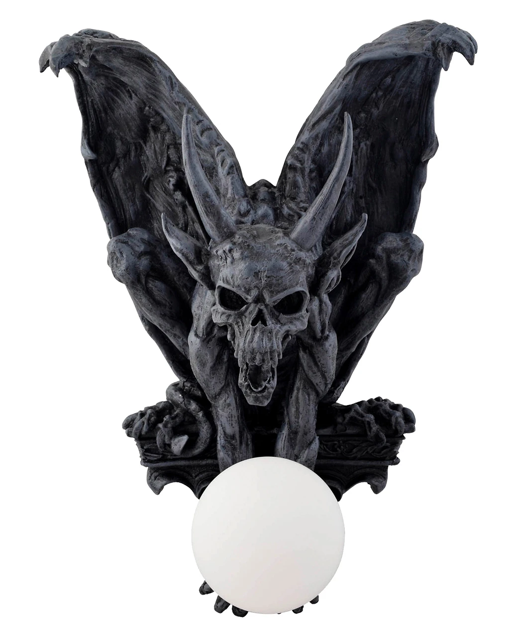 - Fantasy Lampe mit Gargoyle mit Flügeln und Lampenkugel als Verzierung