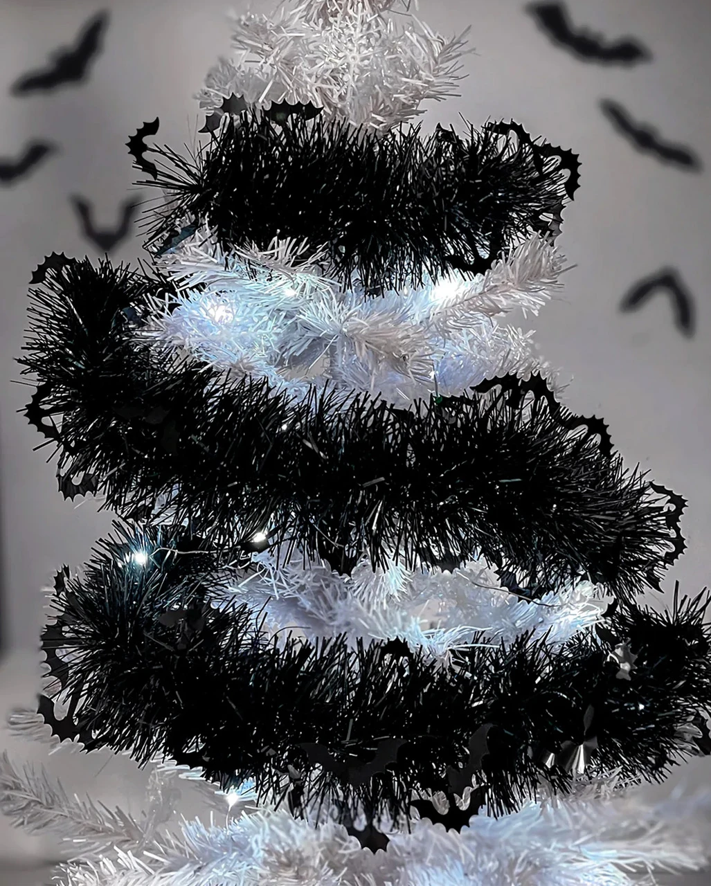 Unsere Spooky Lametta Girlande von KILLSTAR ist eine hervorragende Gothic Deko für Weihnachten und Halloween Party. Die Party-Girlande ist mit schwarzem Lametta dekoriert und kommt mit kleinen Fledermaus Details. Da ist Gruselstimmung vorprogrammiert! Du hast mehrere Möglichkeiten, mit der KILLSTAR Lametta Girlande zu dekorieren. Zum einen kannst du sie klassisch an die Wand oder unter die Decke hängen. Du kannst sie aber auch um deinen Gothic Christbaum drapieren oder auf dem Festtagstisch auslegen und für ein glitzerndes Highlight sorgen. Noch mehr weihnachtliche Gothic Deko gibt es bei uns im Shop.