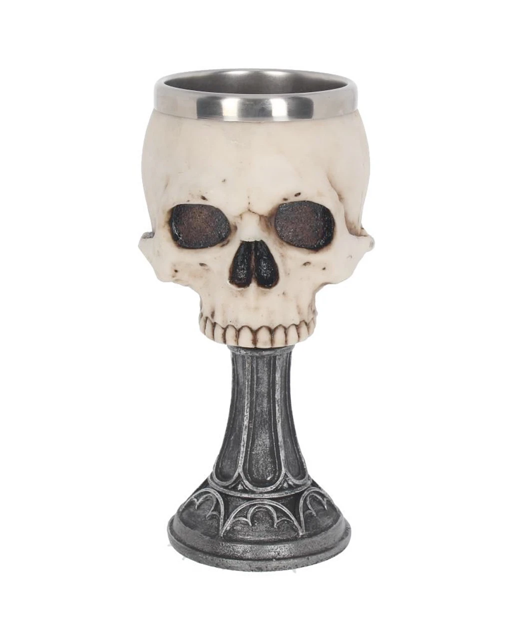 Der Totenschädel Kelch – Anne Stokes Skull Chalice ist ein genialer Gothic Weinbecher, den nicht nur Kenner zu schätzen wissen. Dass dieser Totenschädel Kelch außergewöhnlich ist, sieht man sofort. Das Trinkgefäß, aus aus einem herausnehmbaren Edelstahleinsatz besteht, ist in einem Totenkopf, der aus feinstem Polyresin gegossen wurde, eingefasst. Der Fuß ist mit extravaganten Schnörkeln verziert. Passendes Zubehör wie die Spinnweben Tischdecke findet ihr hier im Shop.